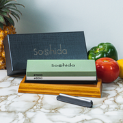 Premium Soshida Japanese Whetstone made of first-class white corundum. Excellent durability, luxury look, and faster honing. Ideal for all premium blades which you wish to maintain a sharp, fine edge. The straight base is made of natural bamboo wood with a non-slip silicone base. Easy and safe to use.