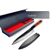 Experience the perfect fusion of tradition and innovation with the Soshida 8” AUS10 Forged Chef Knife. Expertly handcrafted for professionals and passionate home cooks alike, this knife embodies performance, durability, and refined craftsmanship. Packaged with a wooden sheath constructed with internal magnets for a secure hold and safe storage.
