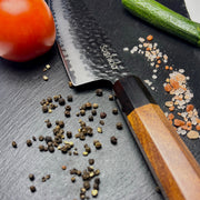 Expertly forged from three layers of steel, the blade features a hand-hammered finish and is refined with a precision sandblasting process. At its core lies high-carbon Japanese AUS-10 steel, clad in two layers of 430 stainless steel for exceptional sharpness, edge retention, and corrosion resistance. The 8-inch blade offers superb versatility—ideal for slicing, dicing, and chopping with precision.
