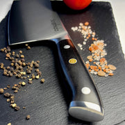 Elevate your culinary experience with the Soshida Ebony Cleaver Knife, meticulously crafted to meet the demands of both professional chefs and home cooking enthusiasts. This cleaver combines traditional design with modern materials to deliver exceptional performance. Forged from X7Cr17MoV stainless steel, the blade offers a balance of sharpness, strength, and corrosion resistance, ensuring long-lasting durability.